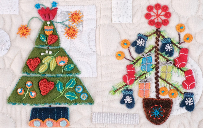 Quilt van wol met applicaties, laagjes en borduurwerk.
