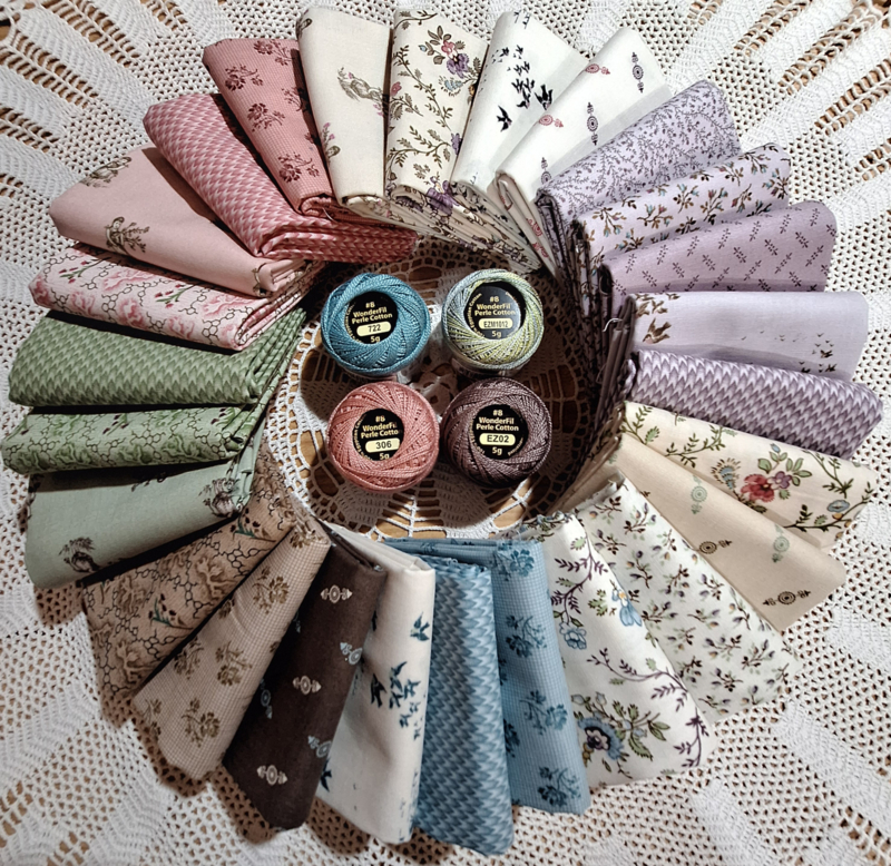 Stofpakket 28082025 F16Stofpakket met 19 quiltstoffen in klassieke/antieke kleuren